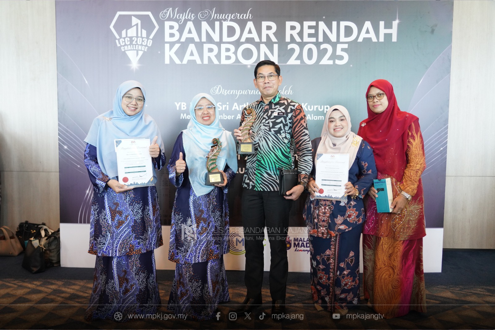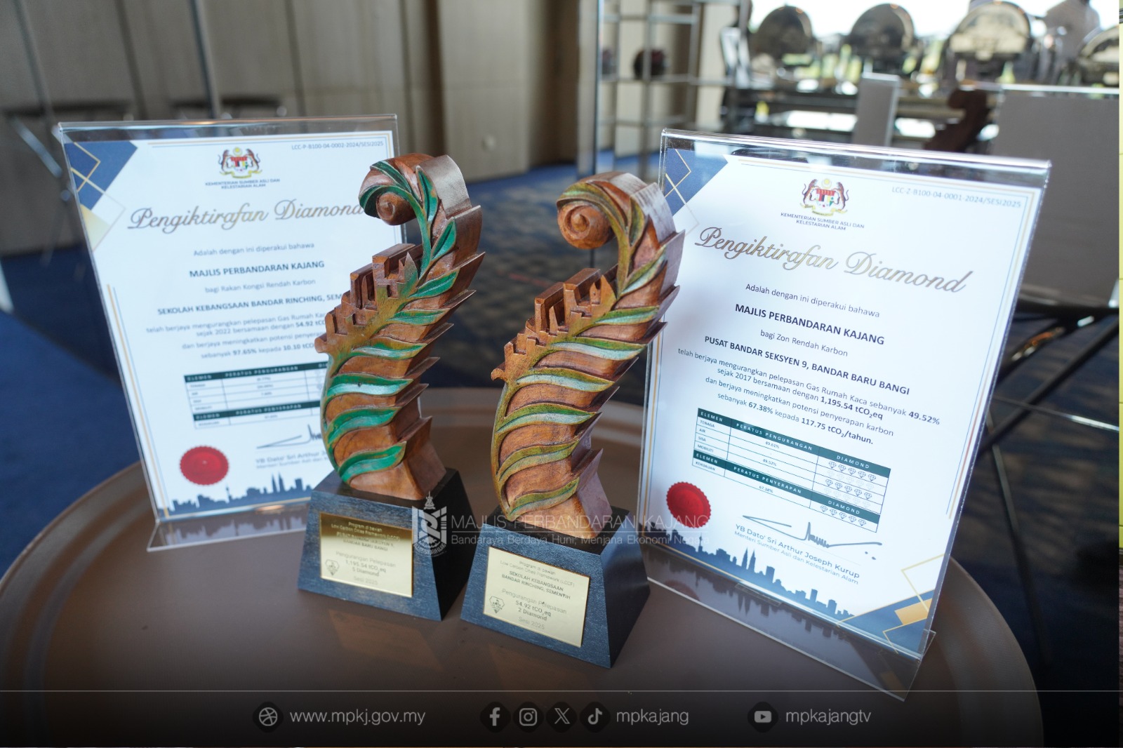 KUALA LUMPUR, 12 FEBRUARI 2026 - Majlis Perbandaran Kajang (MPKj) telah menerima sijil pengiktirafan Bandar Rendah Karbon 2025 bagi kawasan Pusat Bandar Seksyen 9, Bandar Baru Bangi dan Sekolah Kebangsaan Bandar Rinching, Semenyih pada Khamis bertempat di Hotel Hilton, Kuala Lumpur.