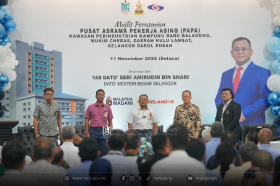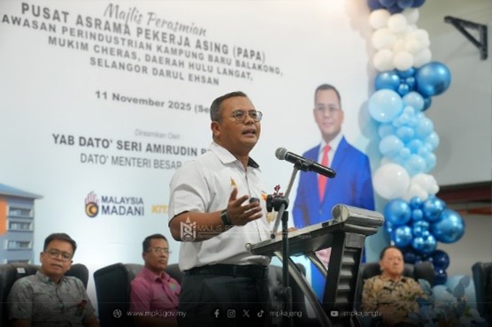 YBrs. Tuan Nazli bin Md Taib, Yang Dipertua, Majlis Perbandaran Kajang (MPKj) hadir menyampaikan ucapan alu-aluan dan mengiringi YAB Dato' Seri Amirudin bin Shari, Dato' Menteri Besar Selangor menyempurnakan perasmian Pusat Asrama Pekerja Asing (PAPA) pada 11 November 2025 (Selasa) di Kawasan Perindustrian Kampung Baru Balakong, Cheras.