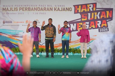 Ucaptama oleh YBrs. Tuan Nazli bin Md Taib, Yang Dipertua (YDP) MPKj mengajak warga kerja MPKj sentiasa bersenam dan bersukan untuk kesihatan diri dan masyarakat. Selain itu, YDP juga memaklumkan tentang peri pentingnya penjawat awam memperkasakan dan memastikan penggunaan bahasa kebangsaan yang betul dan tepat. Tambahan, warga kerja MPKj mesti menggunakan peruntukan bajet dengan optimum dan mula merancang sasaran kerja untuk 2026. Turut dipesan pendekatan HEMAT dalam pelaksanaan kerja perkhidmatan awam.